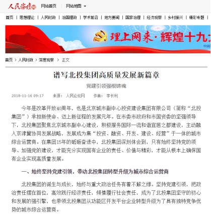今年是改革開放40周年,也是北京城市副中心投資建設(shè)集團(tuán)有限公司(簡稱“北投集團(tuán)”)承擔(dān)新使命、邁上新征程的發(fā)展元年。在市委市政府和市國資委的堅(jiān)強(qiáng)領(lǐng)導(dǎo)下,北投集團(tuán)聚焦北京城市副中心建設(shè),積極服務(wù)國際一流和諧宜居之都建設(shè),主動(dòng)融入京津冀協(xié)同發(fā)展戰(zhàn)略,發(fā)展成為集“投資、融資、開發(fā)、建設(shè)、經(jīng)營”于一體的城市綜合運(yùn)營商。在集團(tuán)15年的砥礪奮進(jìn)中,北投集團(tuán)深刻體會(huì)到,只有始終堅(jiān)持黨的領(lǐng)導(dǎo)、加強(qiáng)黨的建設(shè),才能充分實(shí)現(xiàn)國有企業(yè)的責(zé)任、價(jià)值與精彩,才能從根本上確保國有企業(yè)實(shí)現(xiàn)高質(zhì)量發(fā)展。