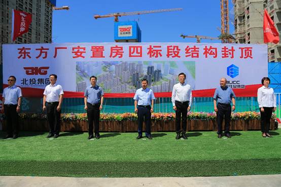 5月26日,隨著最后一斗混凝土徐徐起吊,北投集團承擔(dān)的東方廠安置房四標(biāo)段2#樓和5#樓率先實現(xiàn)結(jié)構(gòu)封頂。北投集團黨委副書記、總經(jīng)理陳衛(wèi)東,住總集團黨委書記、董事長顧昱,北投集團總經(jīng)理助理湯貴海,北投集團工程管理部、北投通城公司主要負責(zé)人,監(jiān)理單位相關(guān)負責(zé)人及八家參建單位代表參加封頂儀式。