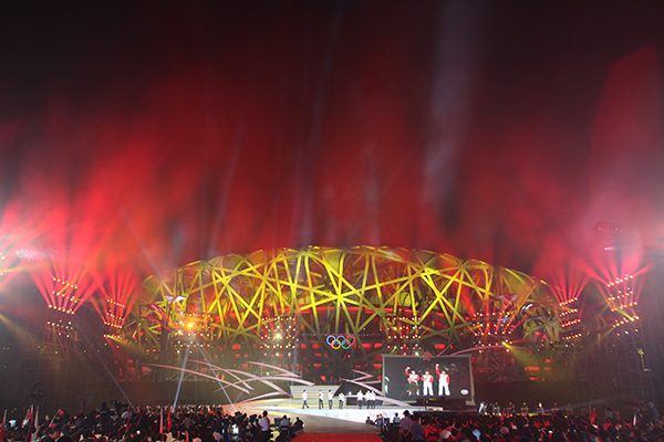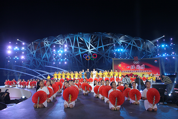 由國家體育總局和北京市政府主辦,北京電視臺承辦的“一路拼搏——慶祝中國奧運代表團凱旋主題晚會”于2012年9月3日晚在北京奧林匹公園中心區(qū)慶典廣場舉行。初秋的慶典廣場星光璀璨、明星云集,剛剛在第30屆倫敦夏季奧運會上載譽而歸的林丹、易思玲、曹緣、陳一冰、張成龍、趙云蕾, 陳定、鄒市明、雷聲、李娜、蔡赟、傅海峰、張楠等13名奧運冠軍集體亮相,不僅現(xiàn)場用精彩的才藝表演展現(xiàn)了奧運冠軍的多才多藝,還講述了他們拼搏背后的成長故事,表達了對祖國和人民的感激之情。同時,成龍、譚晶、戴玉強、莫華倫、羽泉、朗朗、胡彥斌、齊秦、薩頂頂、李宇春、林妙可等演藝界明星鼎力助陣,用精彩的文藝演出為奧運冠軍慶功。
